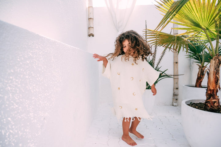 Our hooded towels are made from 100% GOTS Certified Organic Cotton which ensures the absolute softest fabric for sensitive skin. They are also lightweight and breathable in the warmer weather.